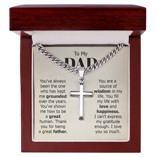 HeartStrings - Cuban Link Chain with Artisan Cross - To My Dad