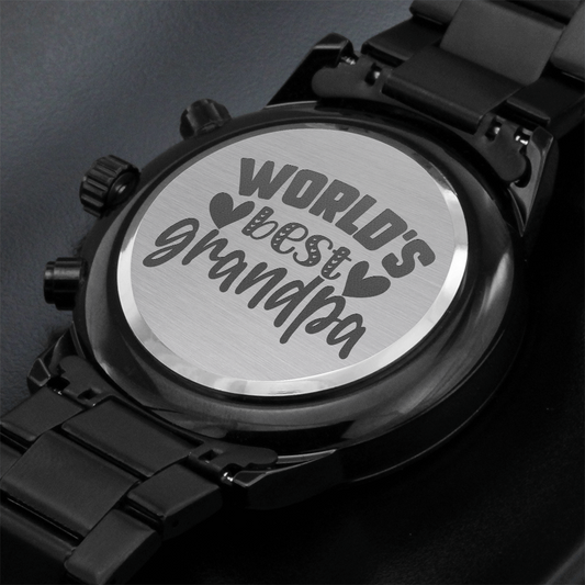 Heart of Time - Black Chronograph Engraved Watch - World's Best Grandpa