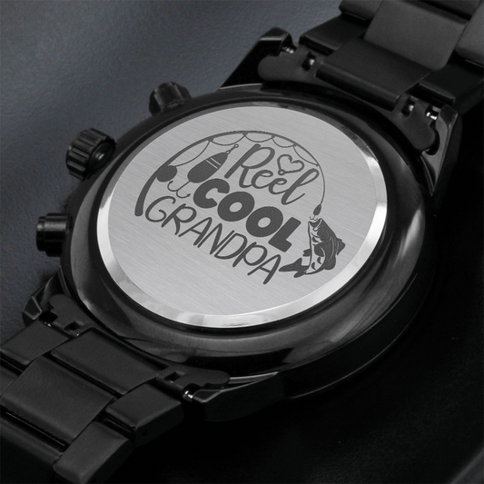 Heart of Time - Black Chronograph Engraved Watch - Reel Cool Grandpa