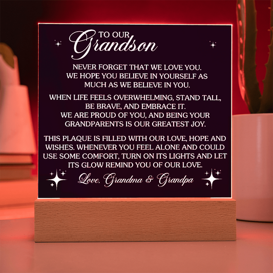 HeartWork - Acrylic Square Plaque - Grandson Never Forget