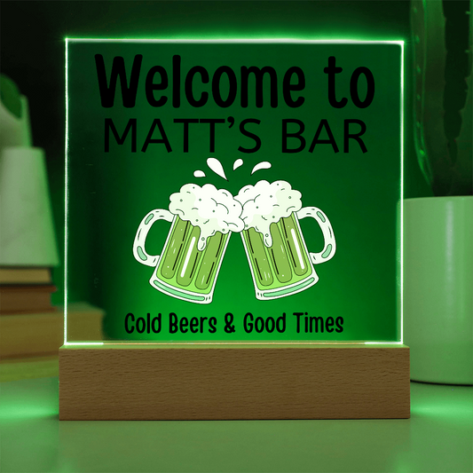HeartWork - Acrylic Square Plaque - Bar Sign Cold Beer Good Times (Personalized)