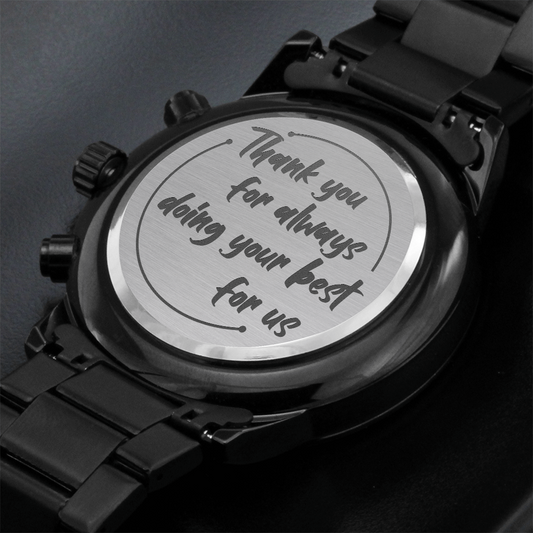 Heart of Time - Black Chronograph Engraved Watch - Thank You For Doing Your Best