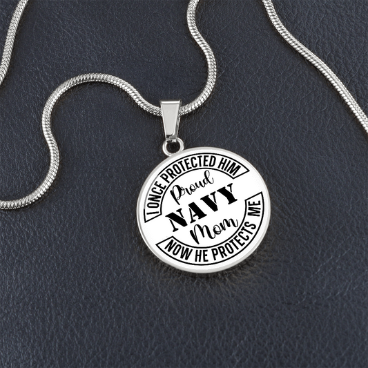 HeartArt - Graphic Circle Necklace - Proud Navy Mom