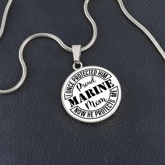 HeartArt - Graphic Circle Necklace - Proud Marine Mom